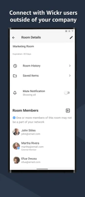 AWS Wickrのユーザーインターフェースはシンプルで直感的です。個人・グループチャット、音声メッセージ、ビデオ通話、ファイル添付など多彩な機能を直感的に操作できます。また、送信メッセージの編集・削除、消えるメッセージの設定なども可能で、情報の安全管理に役立ちます。